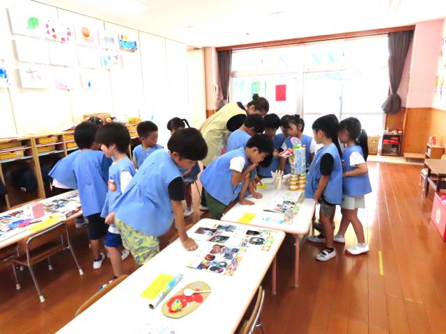 暑い夏休みが終わりましたが2学期が始まってもまだ猛暑が続き、朝からお庭で遊ぶことができません。お庭の遊具もへちまやゴーヤの緑のカーテンも寂しそうです。早く涼しくなって欲しいと思います。空調も新しくなり、お部屋での遊びになりますがクラスのお友だちと楽しく始まりました。これからおじいちゃんやおばあちゃんにはがきを書いて出したり、涼しくなったら運動会のおけいこも始まります。